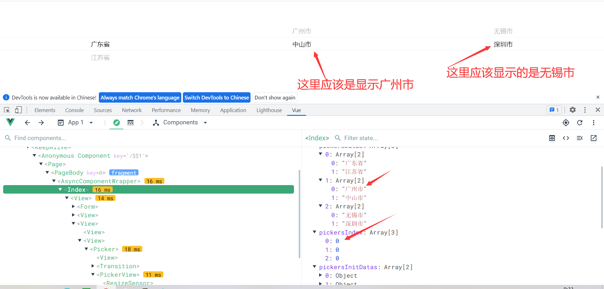 就是拖动省份至江苏省,显示空是正常的,再拖回广东省时显示异常。