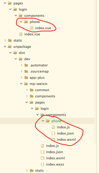 这样的一个目录结构,在 index.vue 中引入 xx-comp.vue,在 H5 端显示正常,但是打包到微信小程序后 xx-comp.vue 组件中的样式内容被打包到 index.wxss 中了,导致 xx-comp.vue 组件显示异常,因为打包后的目录 /pages/index/components 中缺少 xx-comp.wxss 文件。
