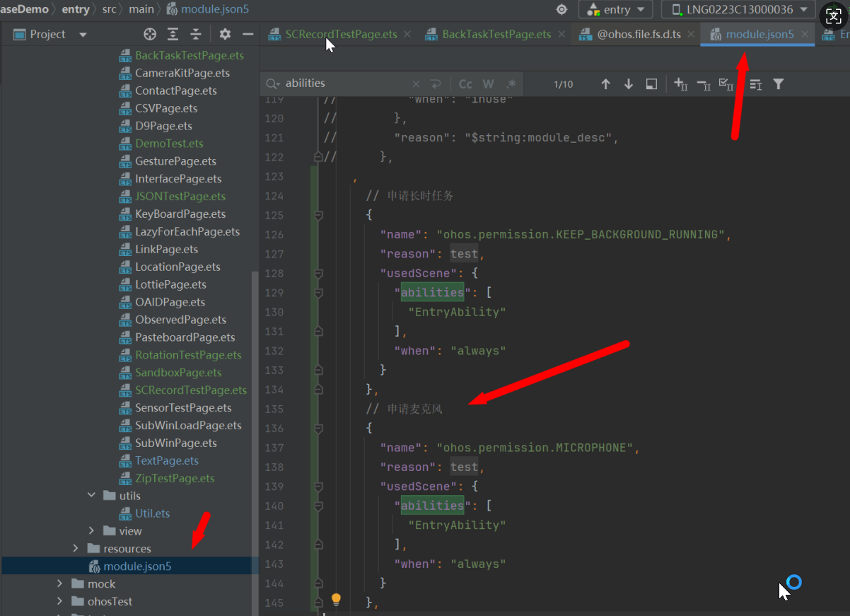注意: 实际开发中因为鸿蒙的后台特性,当录屏时应用切到后台大于三秒,应用进程就会被挂起。所以需要设置后台任务的长时任务。保证录屏的正常。(后面我会针对长时任务以录屏来举例,此处先不处理。)