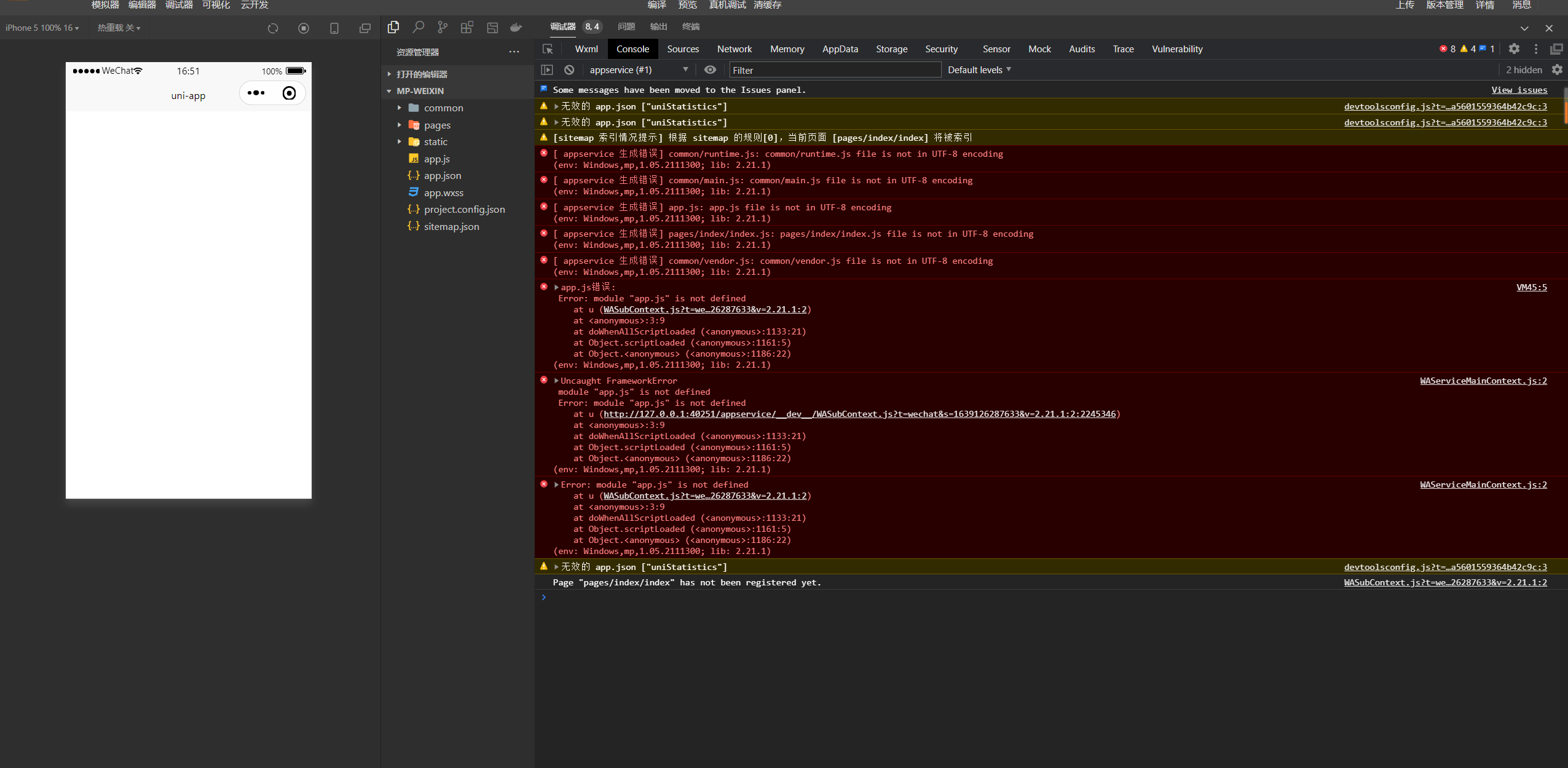这个错误提示“file is not in utf-8”通常是因为文件编码格式问题导致的。微信开发者工具要求所有脚本文件(.js)必须使用UTF-8编码格式保存,而HBuilderX新建的项目默认应该是UTF-8编码。