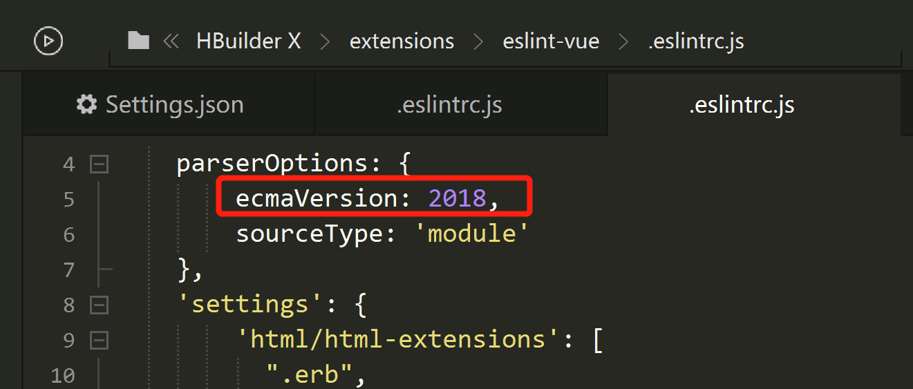 目前暂时的解决方法是在.eslintrc.js文件中修改ecmaVersion的值为2018,原值为2017。