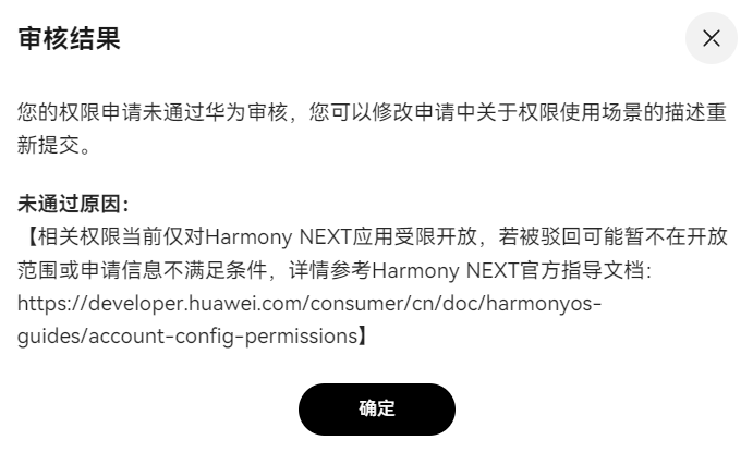 GET_HUAWEI_ACCOUNT_INFO权限,但在此之前,应用很可能没有引导用户完成华为账号的OAuth授权登录。系统检测到缺少这个必要的授权状态,因此判定权限申请条件不满足。