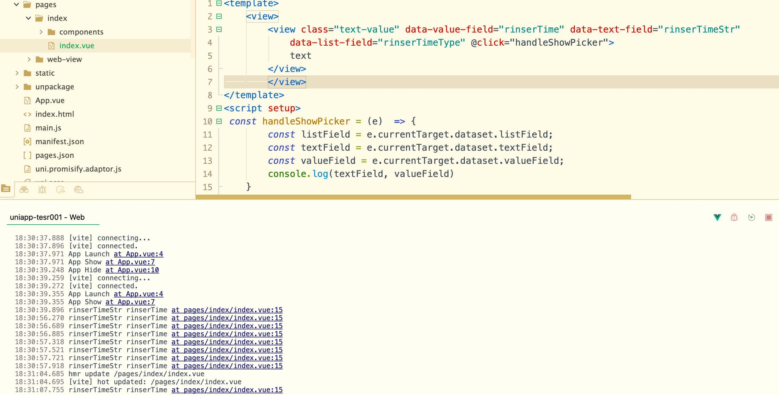 <view class="text-value" data-value-field="rinserTime" data-text-field="rinserTimeStr" data-list-field="rinserTimeType" @click="handleShowPicker">