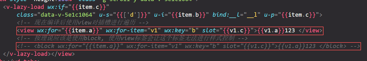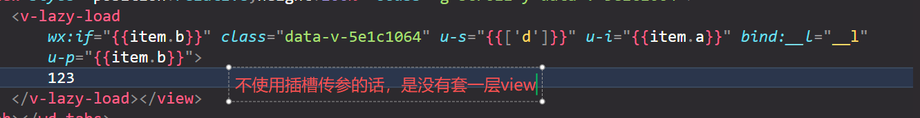 我指的编译后生成的代码中,是通过遍历view标签去注册所有插槽的,所以会多一个view标签。目前如果不使用插槽传参的话,uni编译后的代码是没有生成这个多余的view的