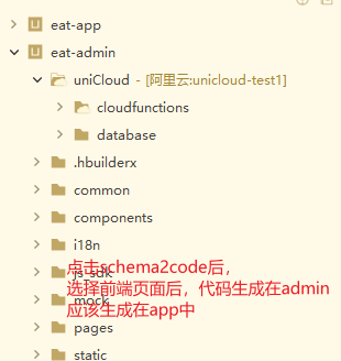 关联云空间后在admin表中点击schema2code时uni-app弹出两个模块并且选择前端页面后没有生成在app前端页面项目而是生成在admin