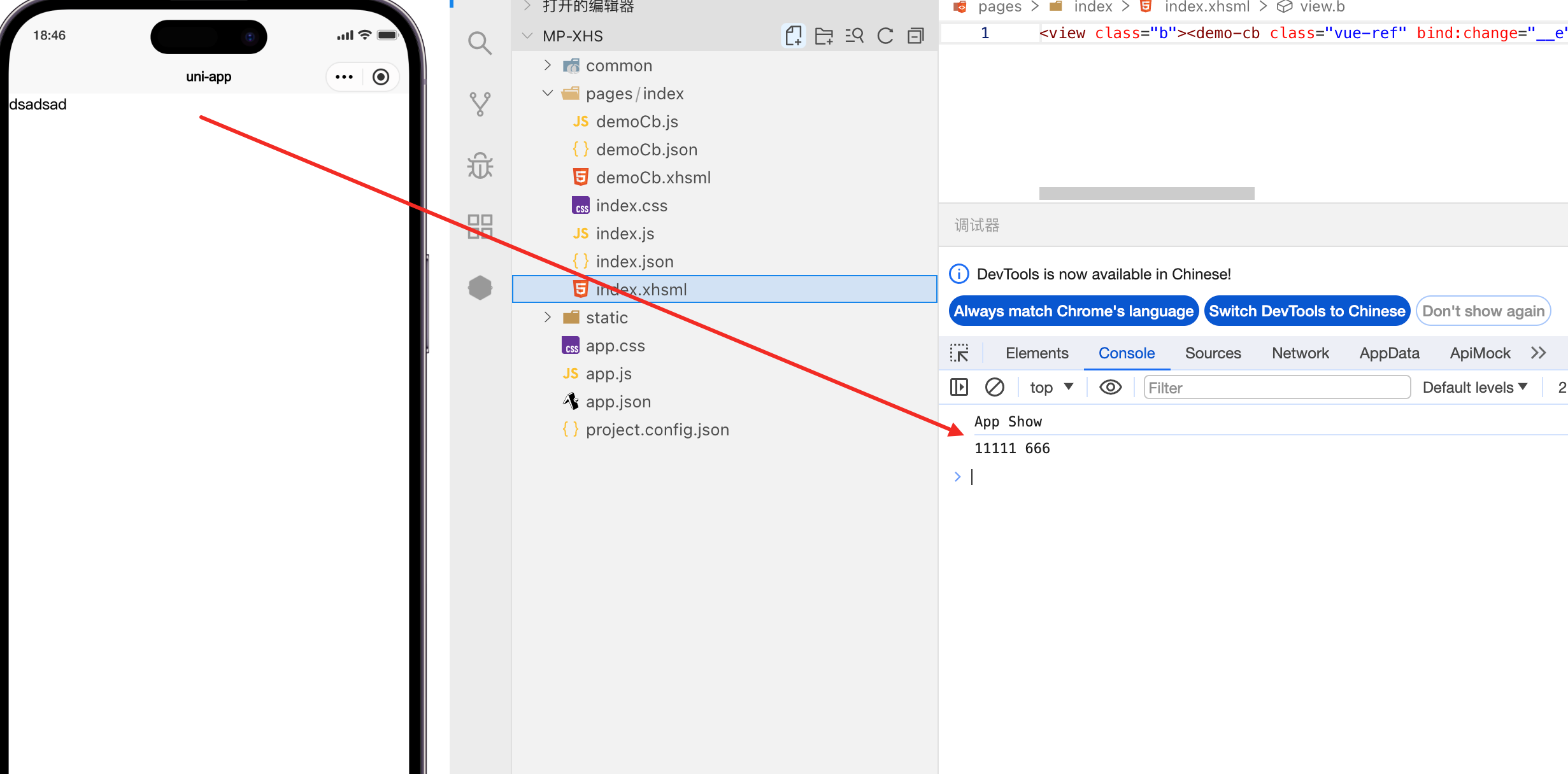 changeCb并没有打印出数据出来,但是构建到微信小程序又是可以的。