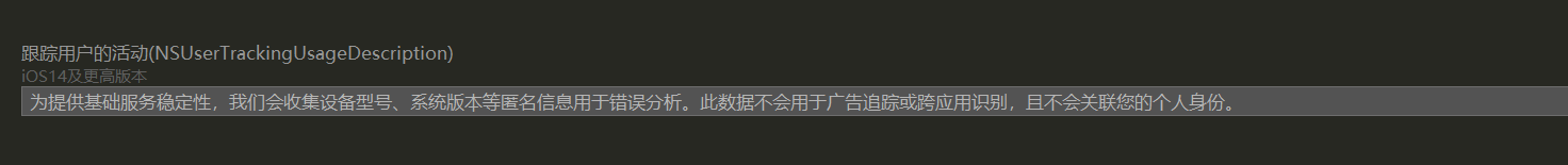 关键信息缺失:未说明NSUserTrackingUsageDescription的具体配置方式(如Info.plist中的键值对内容),也未提供崩溃日志,这对iOS闪退问题诊断至关重要。iOS系统版本标注为"iOS 26"明显错误(应为iOS 16+),影响问题定位。