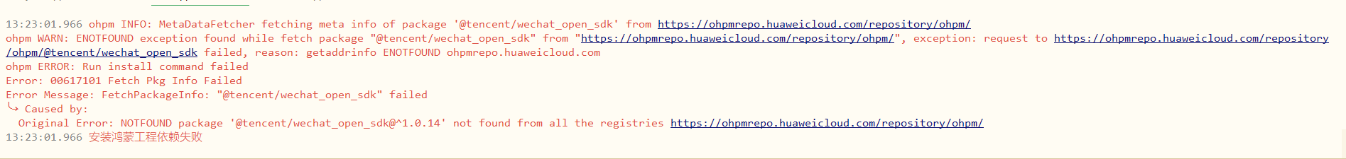 我只是勾选了这里授权登录,然后运行到鸿蒙真机上面 然后就报错这个@tencent/wechat_open_sdk 下载不下来