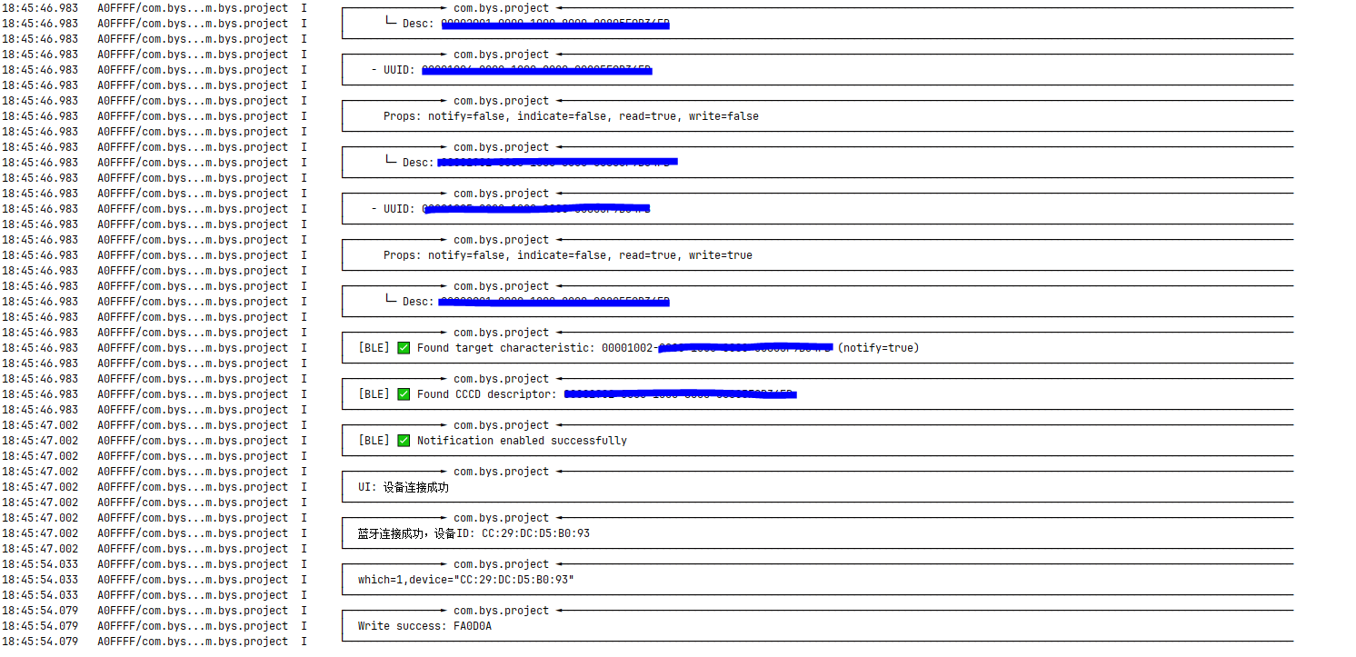 - 蓝牙GATT连接状态异常或服务/特征值发现不完整。