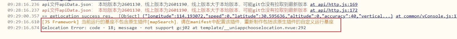 09:29:16.674 Gelocation Error: code - 18; message - not support gcj02 at template/__uniappchooselocation.nvue:292