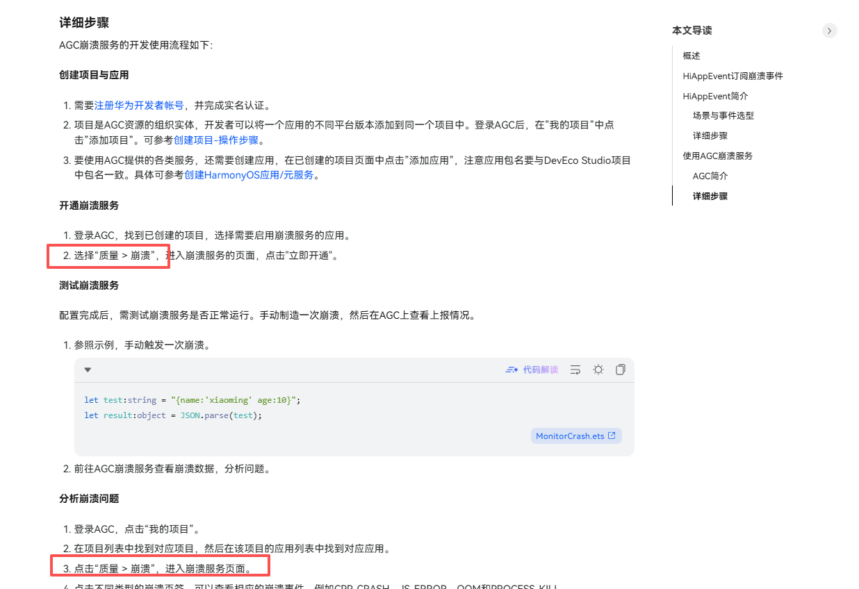 官网文档:https://developer.huawei.com/consumer/cn/doc/best-practices/bpta-crash-monitor-practice#section1688183453210 关于质量-崩溃菜单,这2处在AGC菜单找不到,具体截图如下: