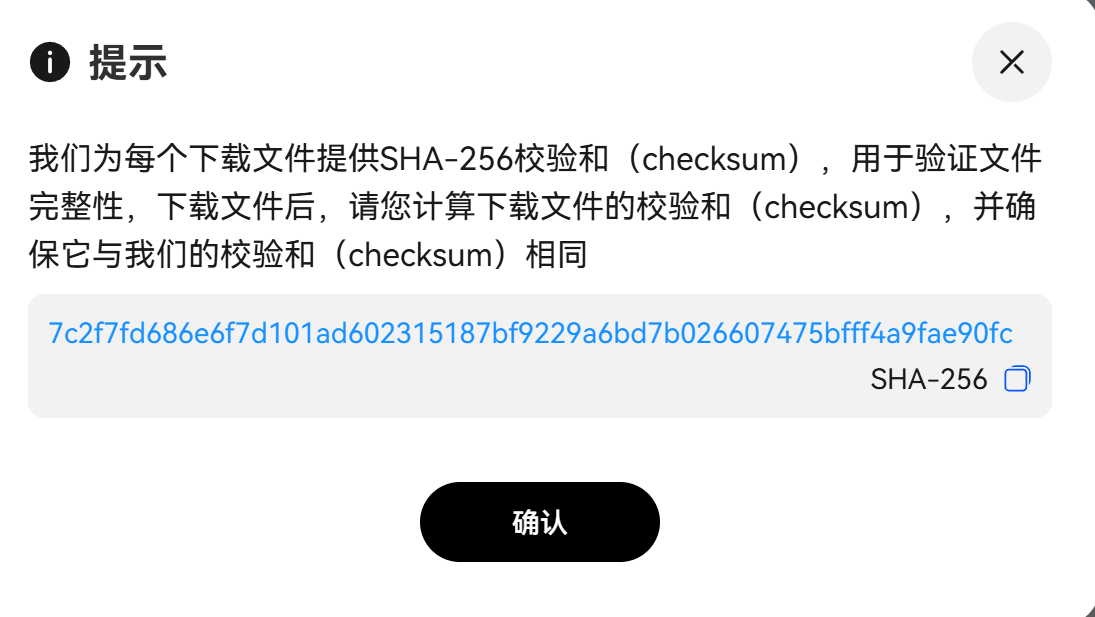 - 将计算结果与官网提供的SHA256值对比,完全一致则文件完整。