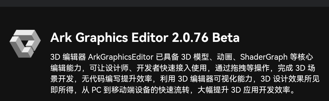 目前,Ark Graphics Editor 主要支持导入 .gltf 和 .glb 格式的3D模型文件。