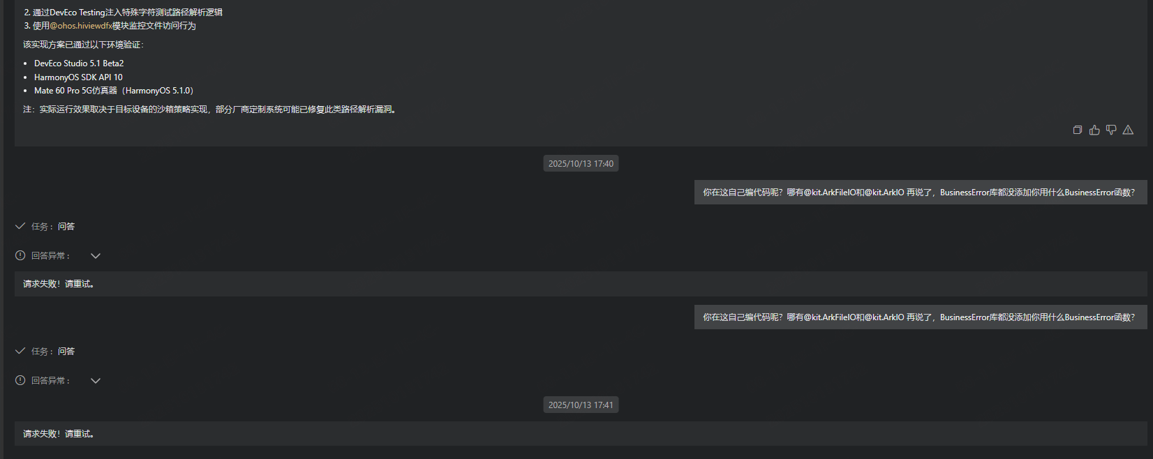 让它写个最基础的文件操作代码,它能直接编模块,明明是@kit.CoreFileKit他自己创造出来个@kit.ArkFileIO