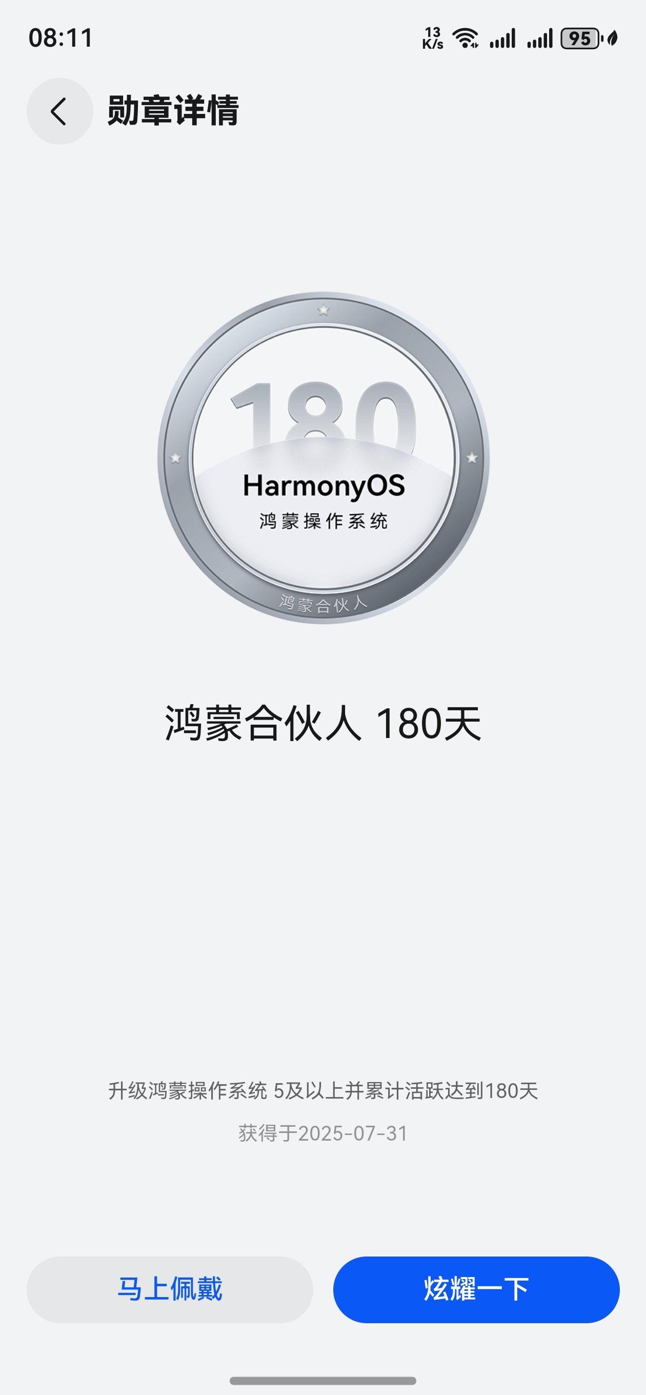 HarmonyOS鸿蒙Next 6升级后新增勋章,见证鸿蒙发展历程 想不到啊,升级了鸿蒙6以后,又多一枚勋章了了,之前的升级鸿蒙next,提建议也有两个啊,不错啊,还有几个鸿蒙合伙人勋章,我们都是鸿蒙发现的见证者,说实话,当主用机用了快一个月了,个人觉得不错啊,👍👍👍👍