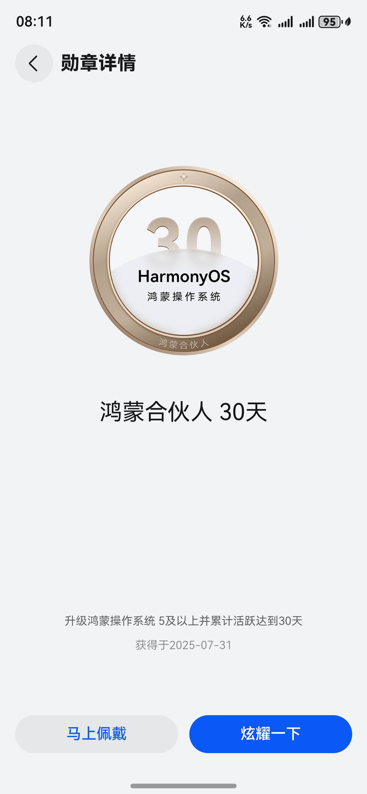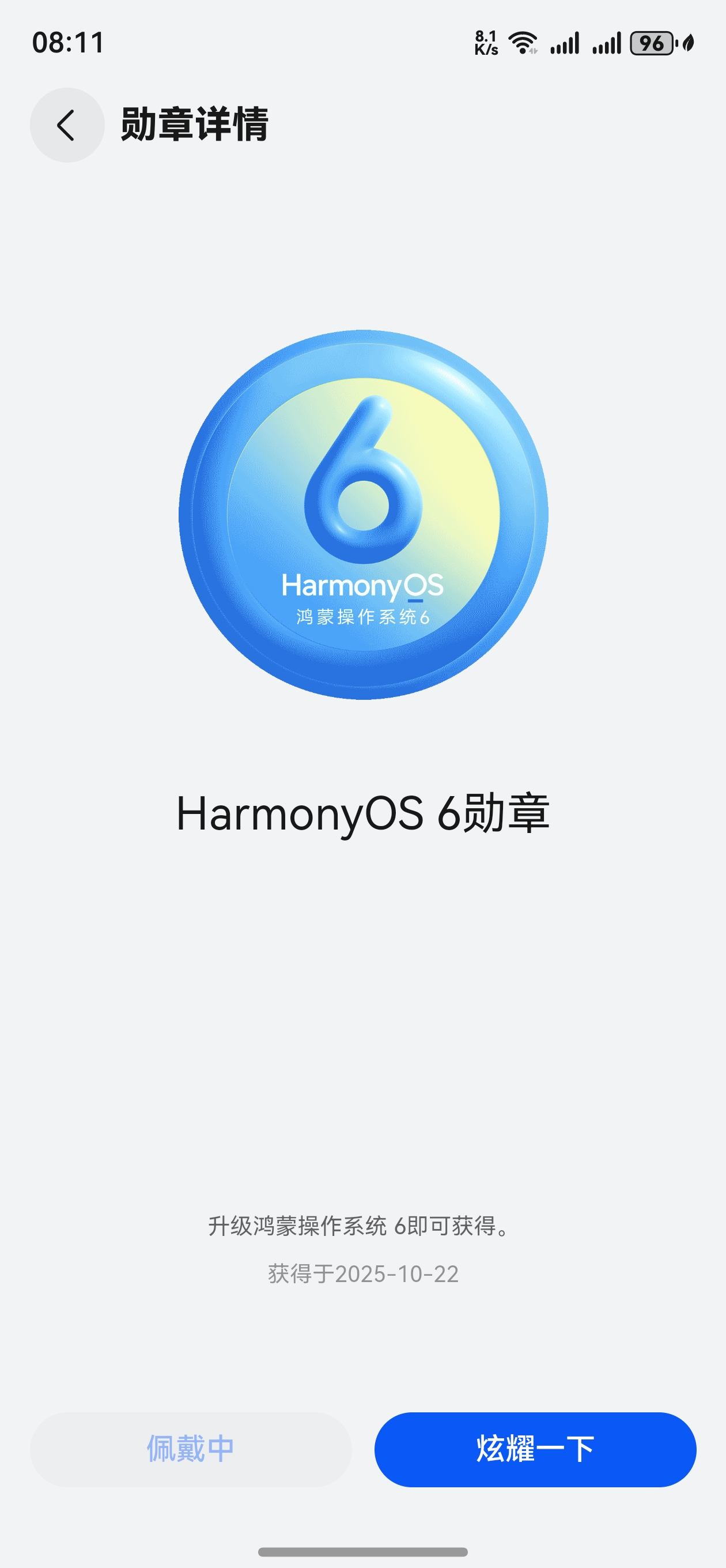 HarmonyOS鸿蒙Next 6升级后新增勋章,见证鸿蒙发展历程