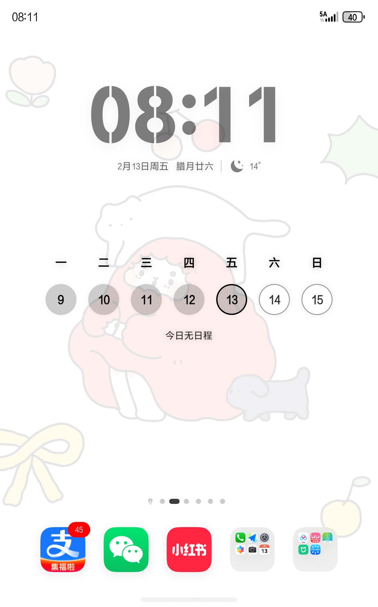 当前无法显示日程具体内容,无需设置,当系统日历中同步了对应日程后,就可以在对应的日期下显示当前是否有日程和有几个日程。