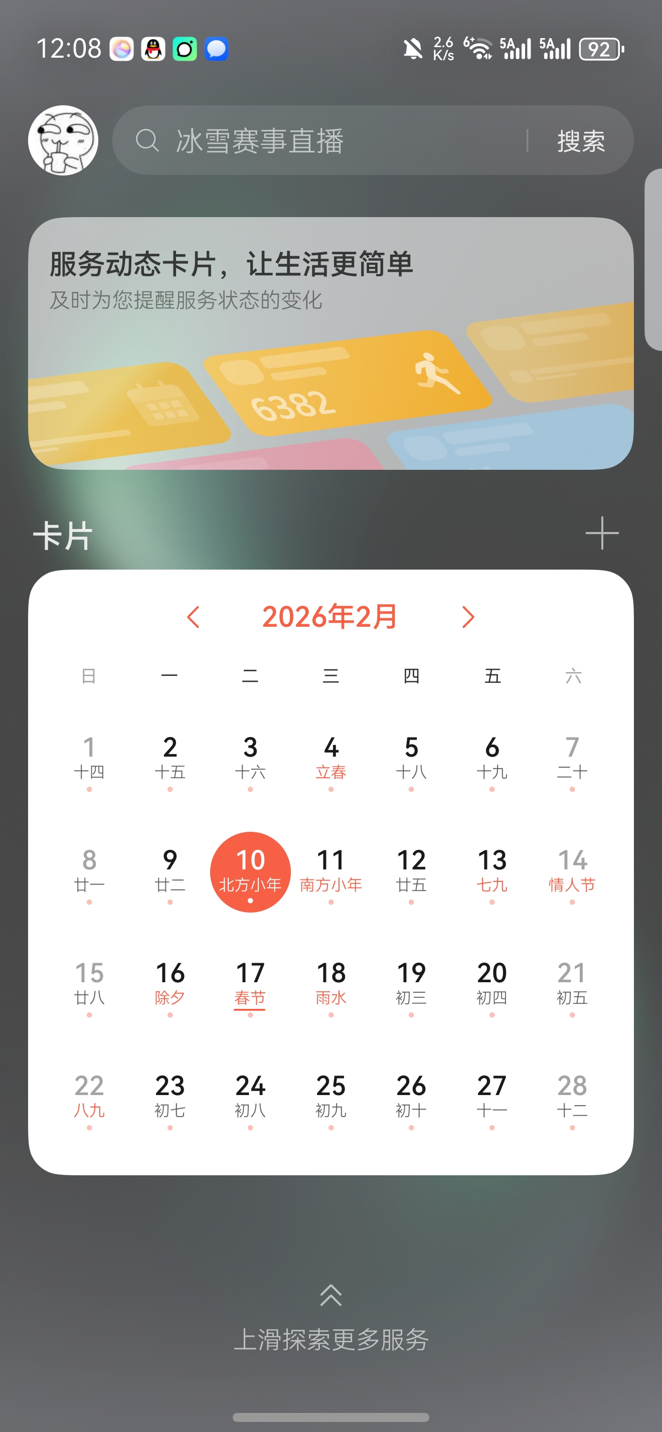 卡片排序自定义:负一屏中下方区域的卡片(如应用快捷服务、新闻、运动健康等)是支持长按后拖动排序、移除或添加的。但顶部区域的动态服务卡片及其下方的“搜索框”、“扫码”等快捷入口的排列顺序是固定的,用户无法调整其上下位置。
