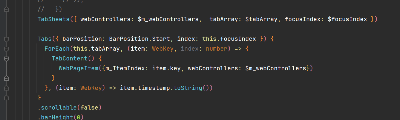 你遇到的问题是在使用 ForEach 渲染动态 Tab 页中的 Web 组件时,删除非末尾的 Tab 会导致后续所有 Web 组件被重建(重绘)。这是因为你使用了时间戳作为 key,导致框架无法正确识别和复用组件。