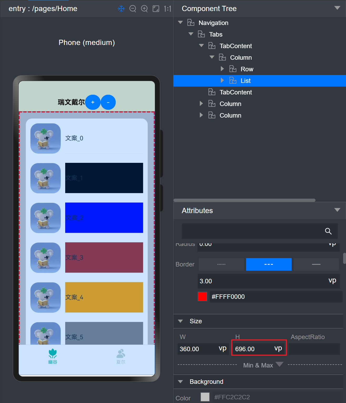 按推荐的线性布局方式,给List组件加了flexGrow(1)方法。理论上 List 组件会占满 Column中减去标题栏高度后的区域,如视频中红色虚线的框框。在List子组件高度累加不超过(Column - 标题栏总高度)时,是这样的。但是子组件高度累加超过时,就会增加List组件的实际高度,如视频上红色虚线框被增加了。我估计应该是跟Column的高度一致了。