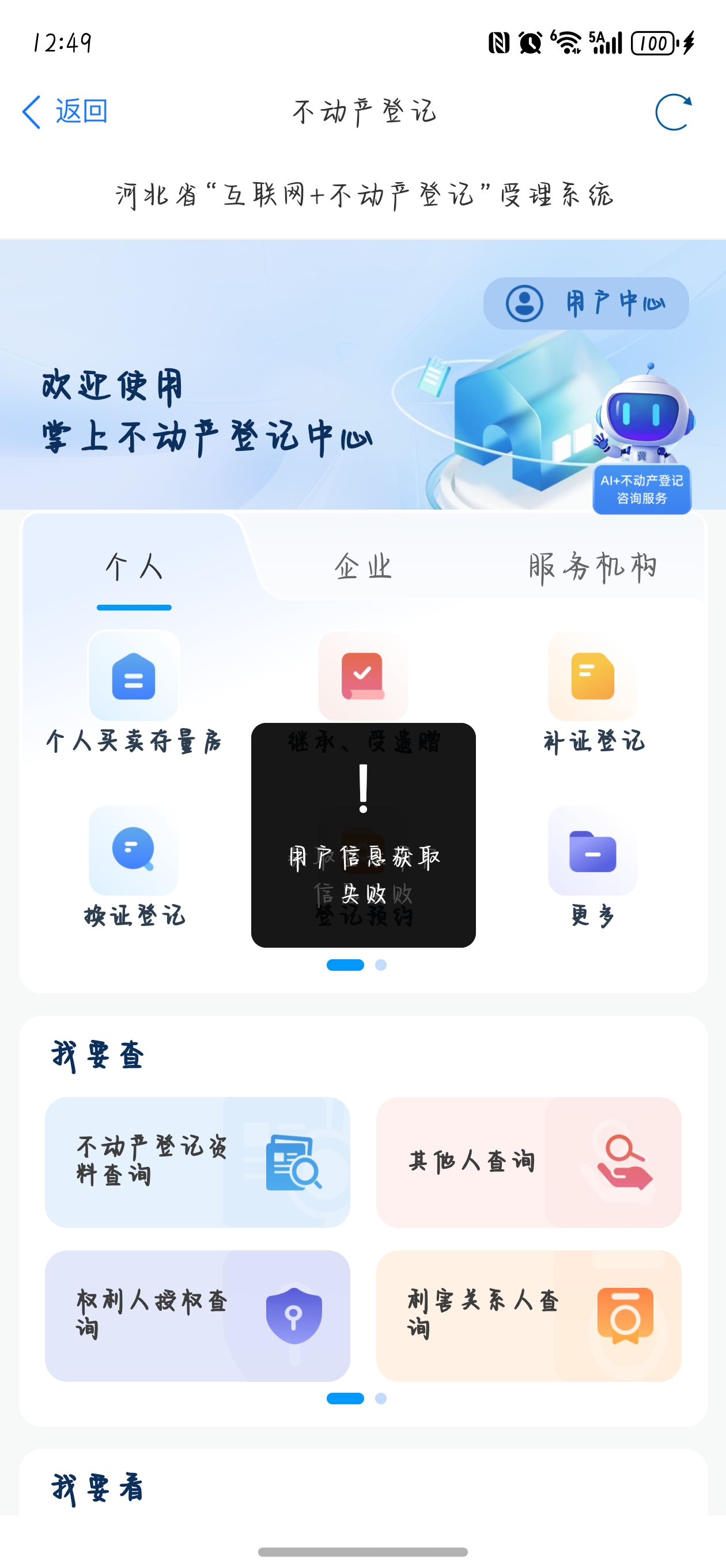 冀时办,河北政务服务系统,查询不动产登记证明就是不能用,用其他系统的手机登录我的账号就可以,这样的 bug 可有点太差劲了。