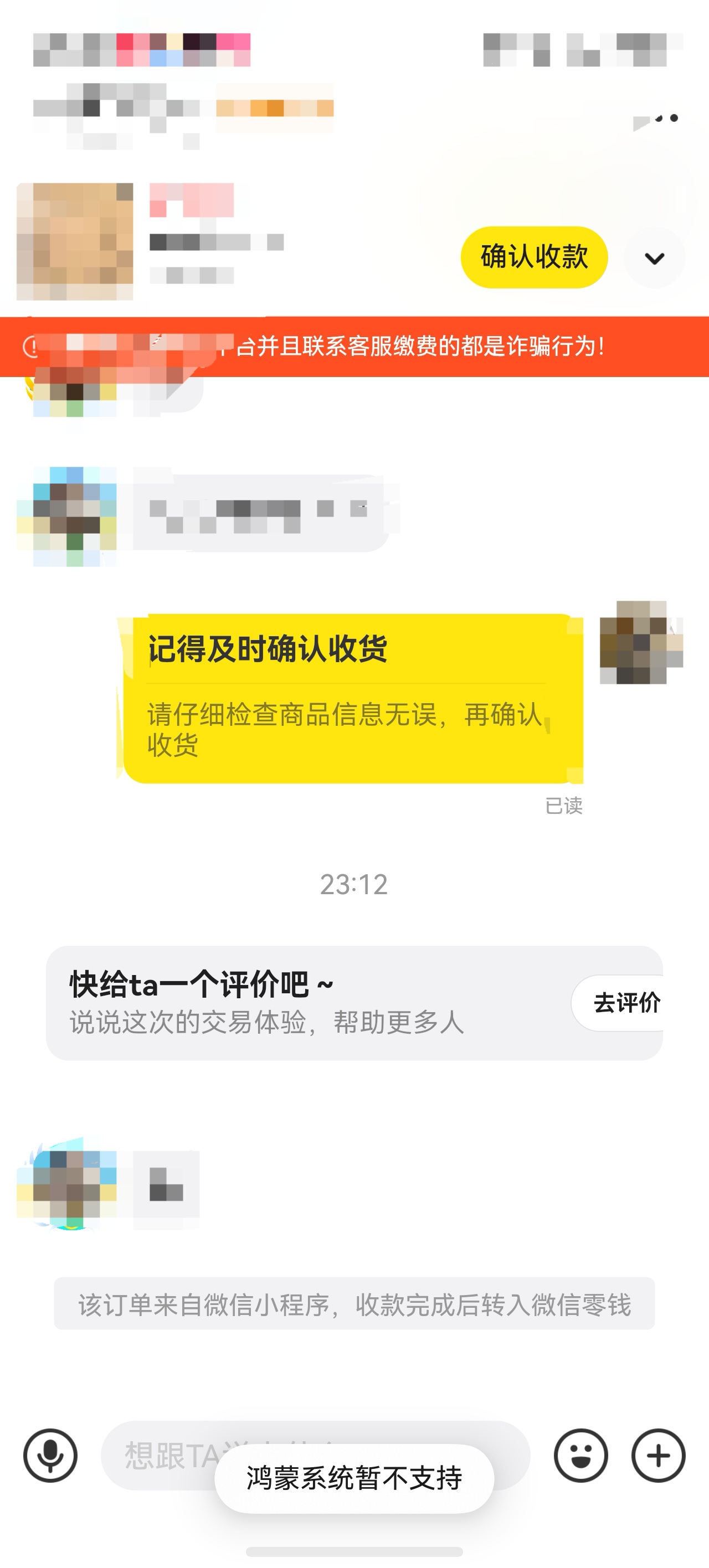 闲鱼面对面,HarmonyOS鸿蒙Next中交易后无法确认收款。