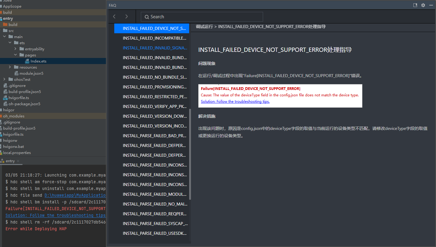 DevEco Studio3.1.1 新建空项目 链接华为mate70 HarmonyOS鸿蒙Next 4.3系统真机调试提示Failure[INSTALL_FAILED_DEVICE_NOT_SUPPORT_ERROR]