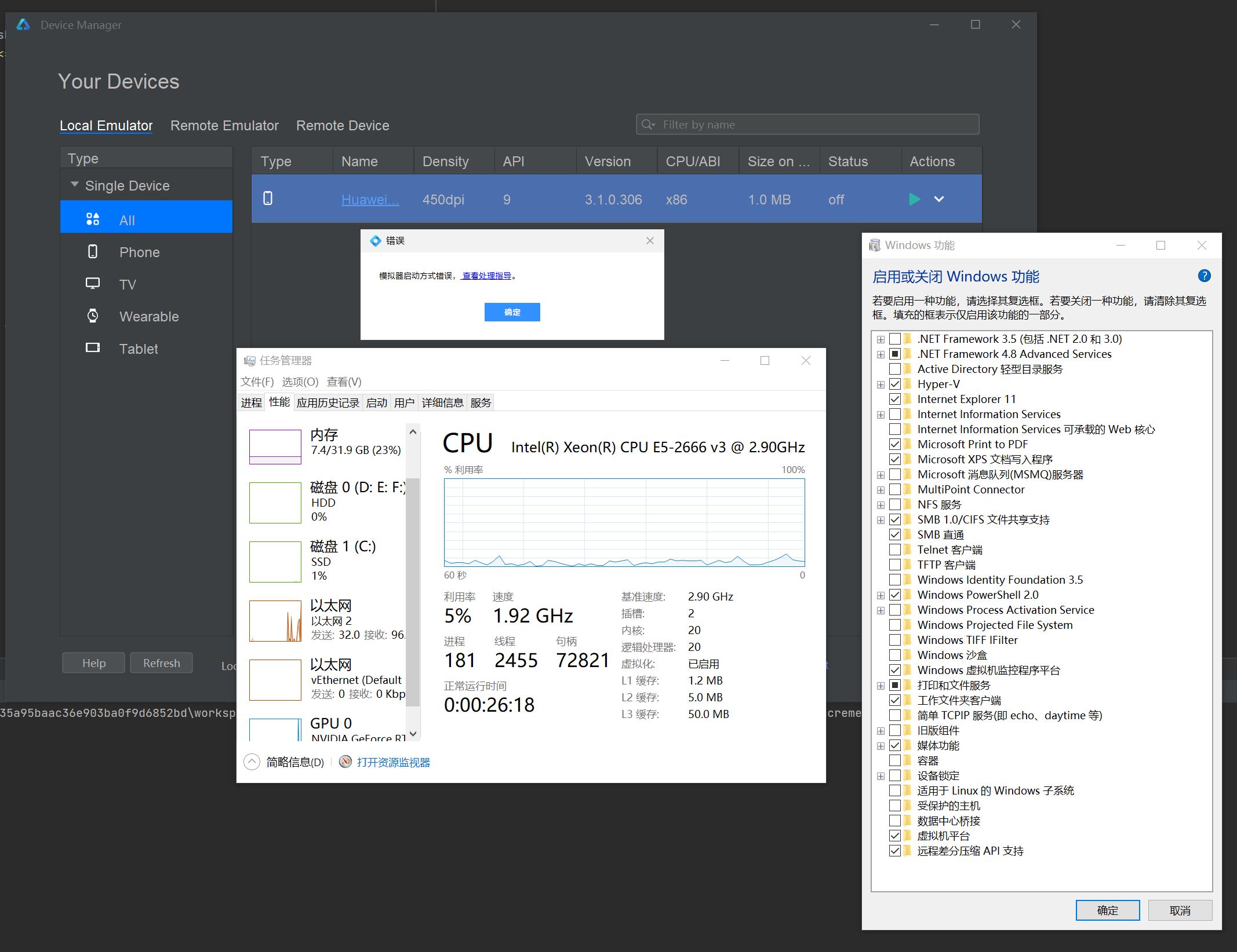DevEco studio 模拟器启动方式错误,查看处理指导,如何解决?