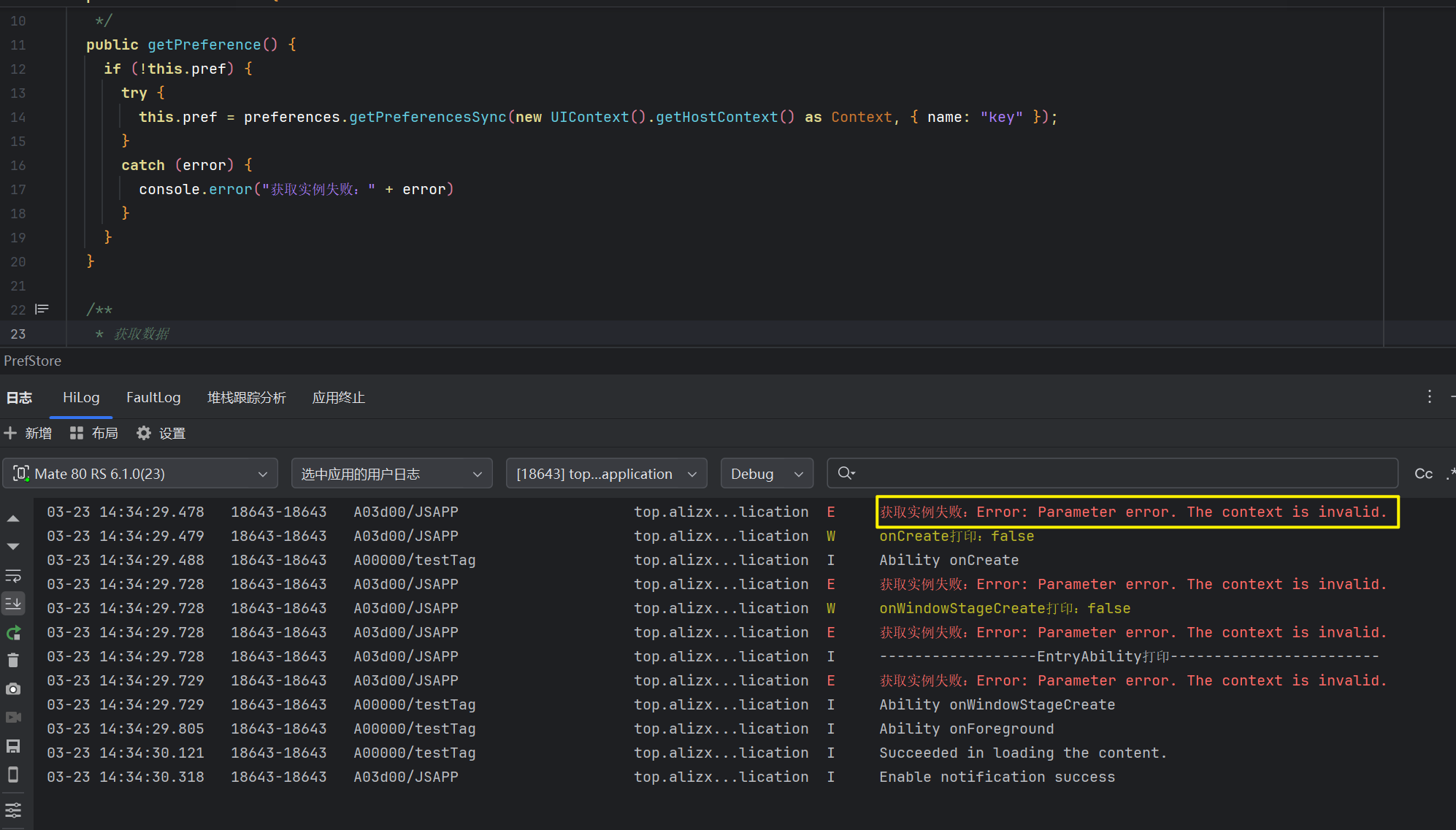 HarmonyOS鸿蒙Next中首选项获取实例失败