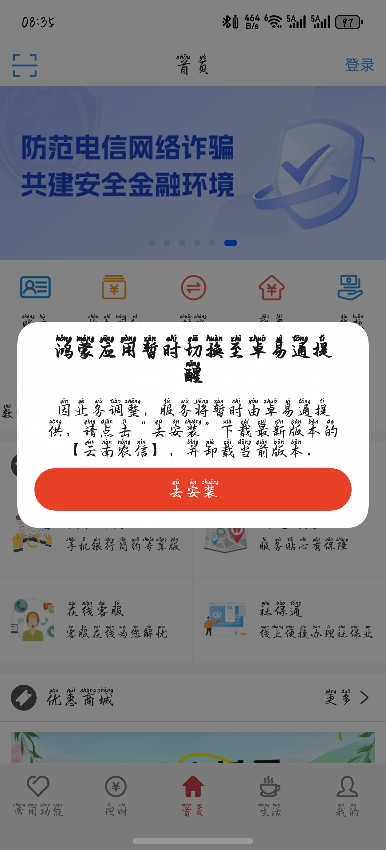 云南农信为什么突然转到桌易通,而且用不了,这个我经常要用的。请恢复以前的HarmonyOS鸿蒙Next app使用