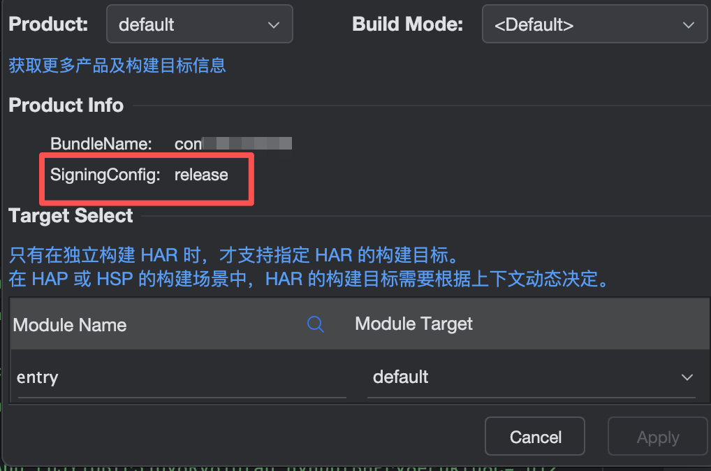 看你的报错,修改 product 中 signingConfig 字段为 default 即可。release 作为发布打包时使用,不可用来调试。
