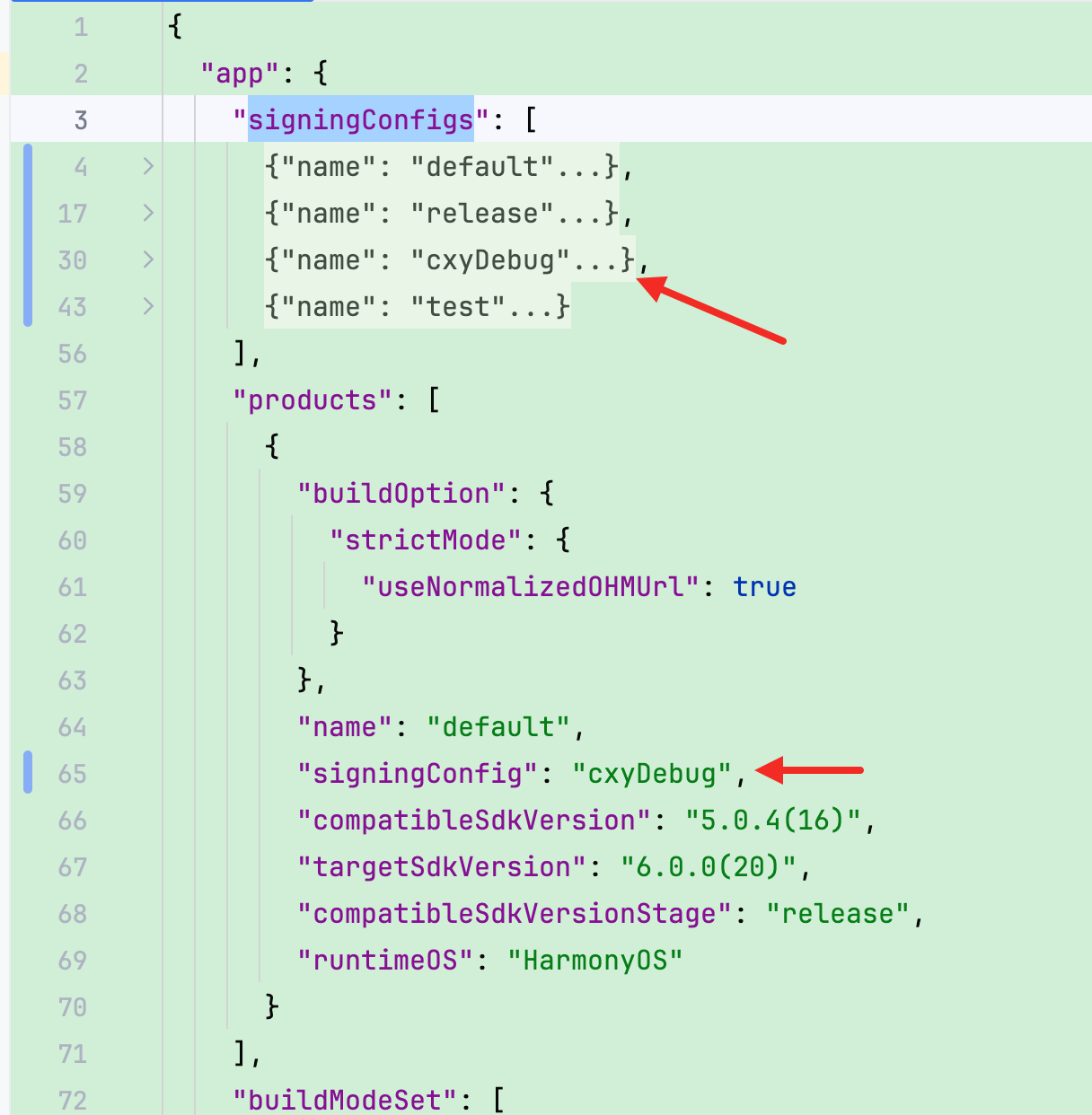 你好,signingConfig 字段的配置在根目录的 build-profile.json5 products[] 中,
