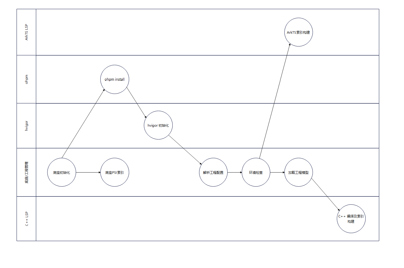 DevEco Studio是基于IntelliJ IDEA开源底座打造,用于HarmonyOS 应用开发的IDE。在Sync过程中除了IntelliJ IDEA底座原生的初始化及索引构建外,还会进行工程相关的工程解析、依赖解析及下载安装(ohpm install)、编译构建初始化(hvigor)、ArkTS语言索引构建、C++索引构建等。主要流程如下图所示
