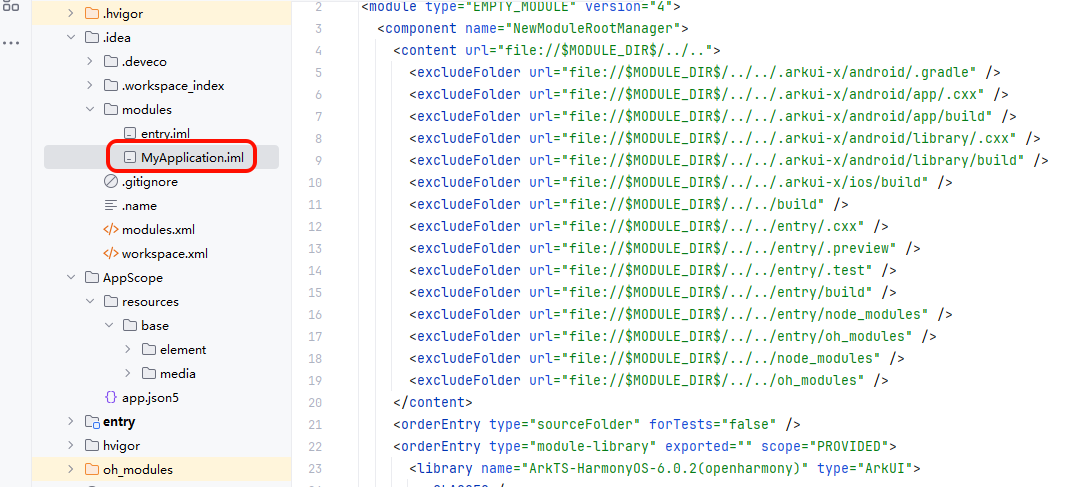 如果不需要关注某文件夹,可排除此文件夹的索引:在该工程目录的.idea/modules/工程名.iml中添加(若无对应文件,可能为工程首次打开,重启IDE即可)。
